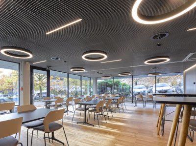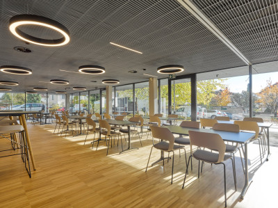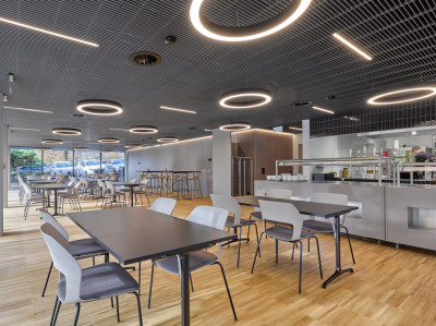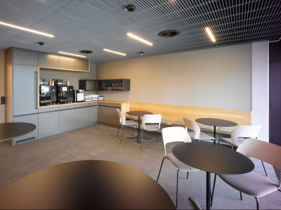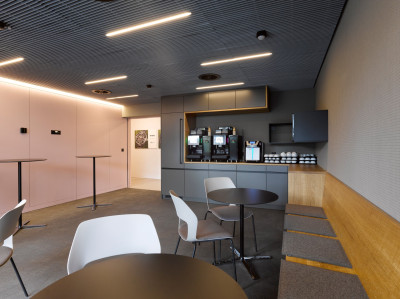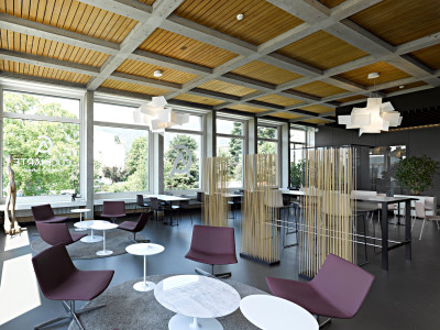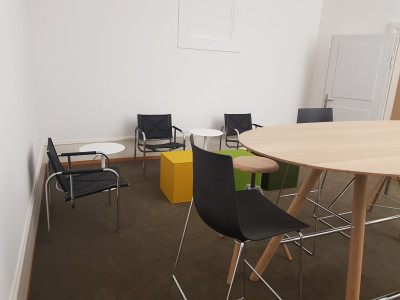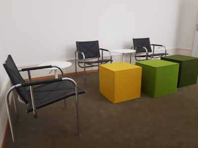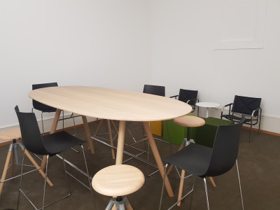 Möblierung eines Gemeinschaftsraumes zur Nutzung für verschiedene Anlässe wie Meetings und Events.